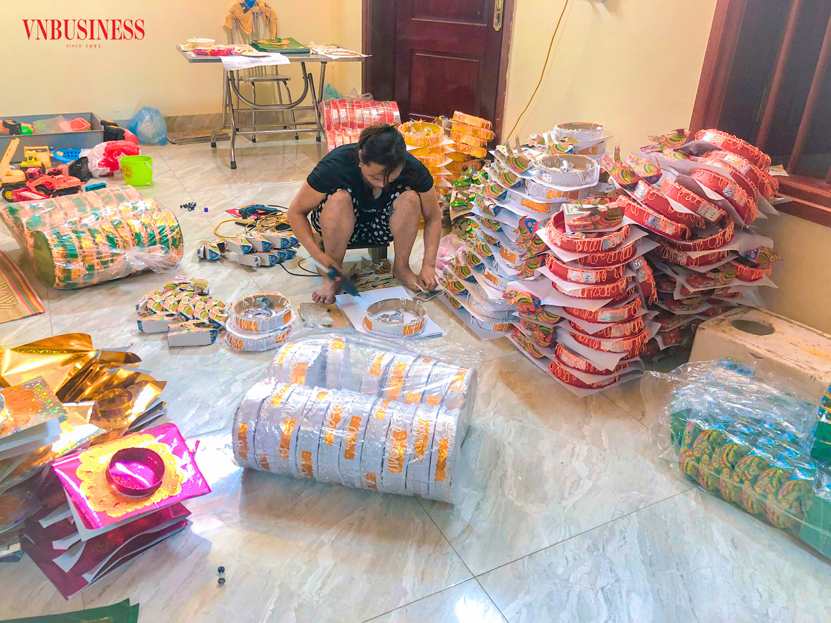 “Trong đó, vụ Rằm tháng 7 sẽ kiếm được nhiều hơn so với vụ Tết. Tuy nhiên năm nay, không chỉ riêng nhà tôi mà nhiều hộ gia đình khác ở thôn Nghĩa Xá cũng đều bị “đói” đơn hàng. Chủ xưởng không tiêu thụ được nhiều nên họ cũng không về thôn đặt hàng nhiều như năm ngoái. Mãi đến khoảng giữa tháng 5 âm lịch trở lại đây, nhà tôi mới bắt đầu làm nhiều lên chứ các tháng trước đó hầu như không có đơn hàng nào”, chị Thùy chia sẻ.